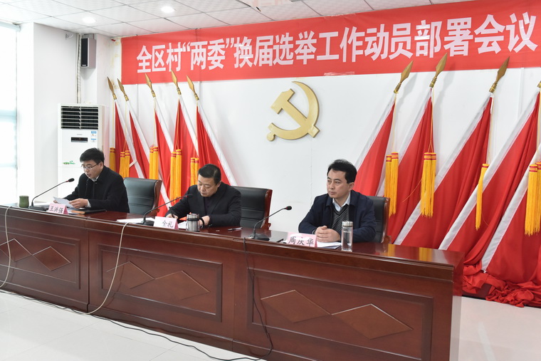 12月18日,全区村“两委”换届选举工作动员部署会议召开,贯彻落实全省、全市村和城市社区“两委”换届选举工作动员会议精神,安排部署我区村“两委”换届选举工作。区党工委书记李金礼出席会议并作动员讲话,市派督导组组长周庆华出席会议并讲话,区党工委副书记王洪强主持,区领导李家鹏、张奇、高宝宽及市派督导组全体成员出席会议。