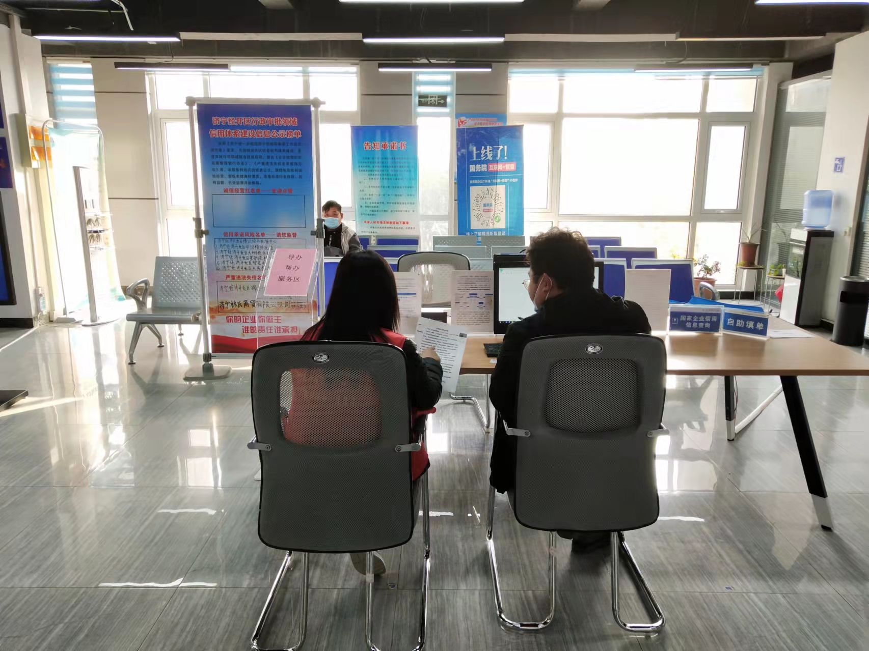 三、足履实地,打通优化经开审批“堵点”。行动代替口号,实践解决问题“。济宁经济开发区行政审批服务局推行“提前上岗、延时办理”便民服务,实行了”面对面、肩并肩“式帮办代办服务,真正把服务做到了群众的心坎上,实现服务群众“零距离”。坚持问题导向,奔着问题去、盯着问题改,切实解决企业和群众的“急难愁盼”问题,把老百姓的事办得更实更好。