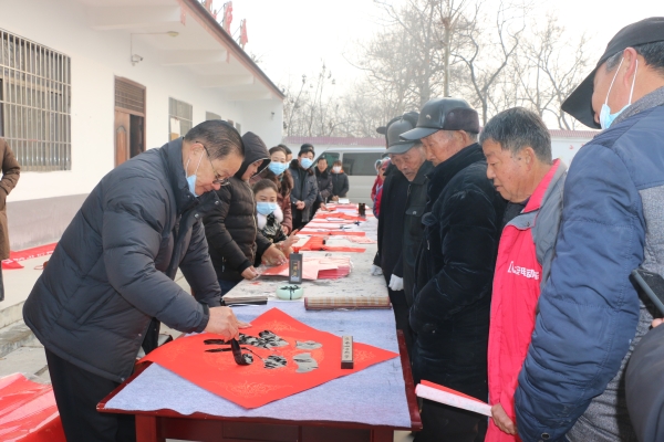 与此同时,第一书记也在现场与村民畅聊,听取大伙的声音,了解大家的需求,宣传上级政策。“俺们村这是第一次有送春联的活动,外面也有卖春联的,但是这样写的春联更有年味。第一书记又是送政策又是送春联,事事都想着俺们,真不孬。”现场参加活动的村民脸上洋溢着幸福的笑容。