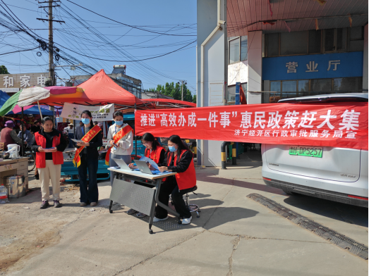 4月23日,区行政审批服务局联合不动产、人社等部门,走进王集大集,开展“推进‘高效办成一件事’ 惠民政策赶大集”活动,以“摆摊设点”的形式,把政务服务送到群众身边。