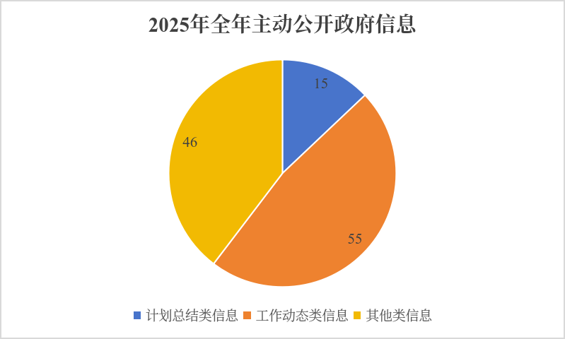 2025年度,全镇主动公开政府信息共计116条。其中,计划总结类信息15条、工作动态类信息55条、其他类信息46条,全面覆盖政务工作关键领域。