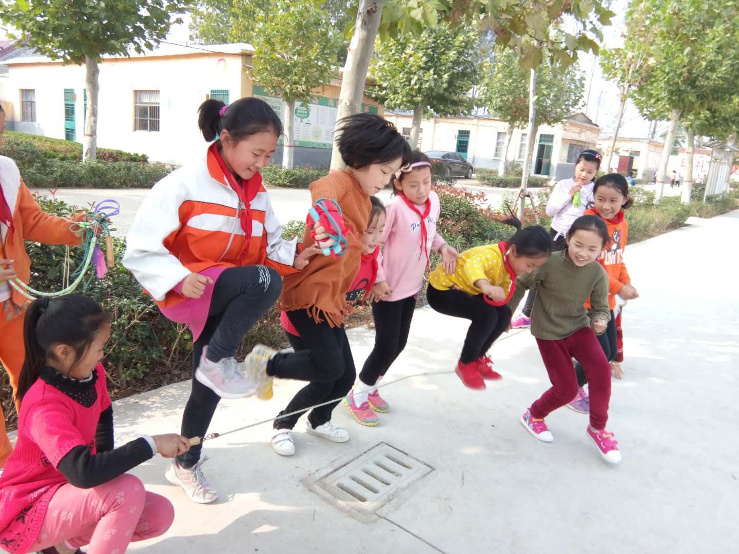 大课间活动是我们学校一道独特而又美丽的风景线。活动丰富多彩、有滋有味,除了课间操之外,还有跳绳、打乒乓球、扔沙包、踢毽子、老鹰捉小鸡……