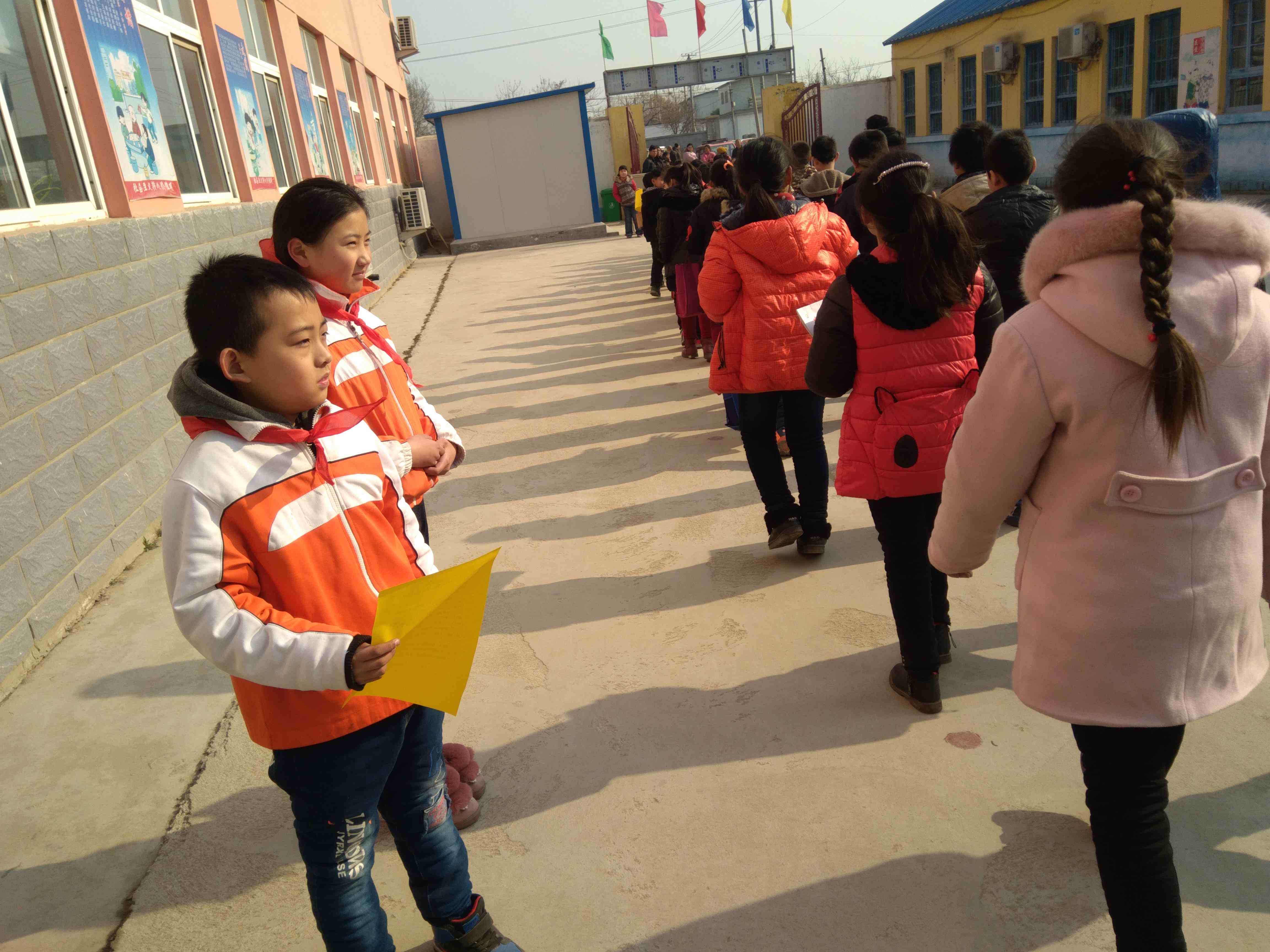 活动中,少先队员们手持倡议书,逐一发给同学们,并不时的对低年级学生耐心的讲解,引导同学们为活跃传统节日的气氛,也可以和家长一起通过写春联、剪窗花、印年画、打锣鼓、制作中国结和灯笼等方式代替燃放烟花爆竹。