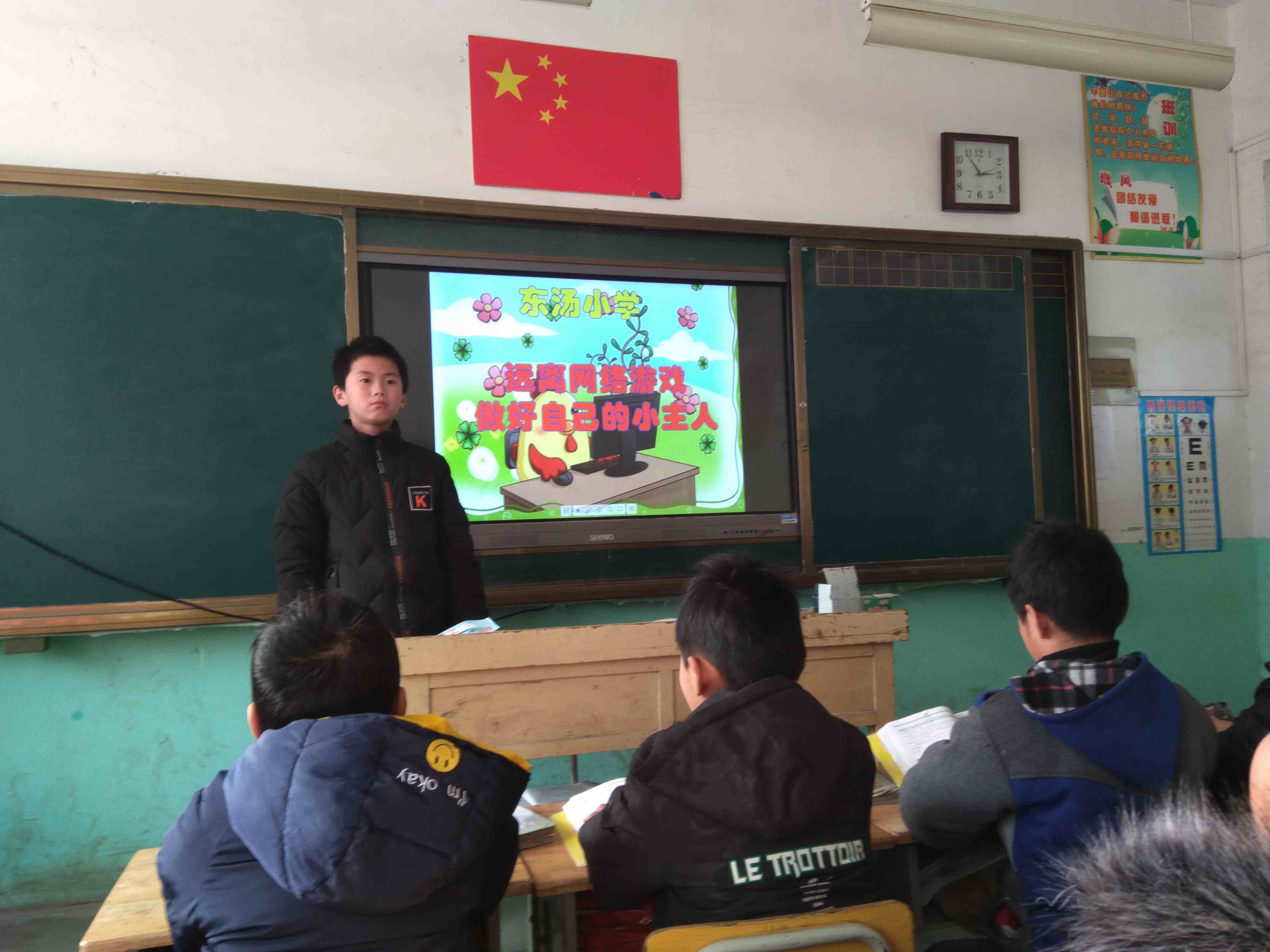 为了让同学们提高警惕,学会抵制网络游戏的不良诱惑,保护身心健康,12月26日东汤小学开展了“远离网络游戏,做好自己的小主人”的主题活动。