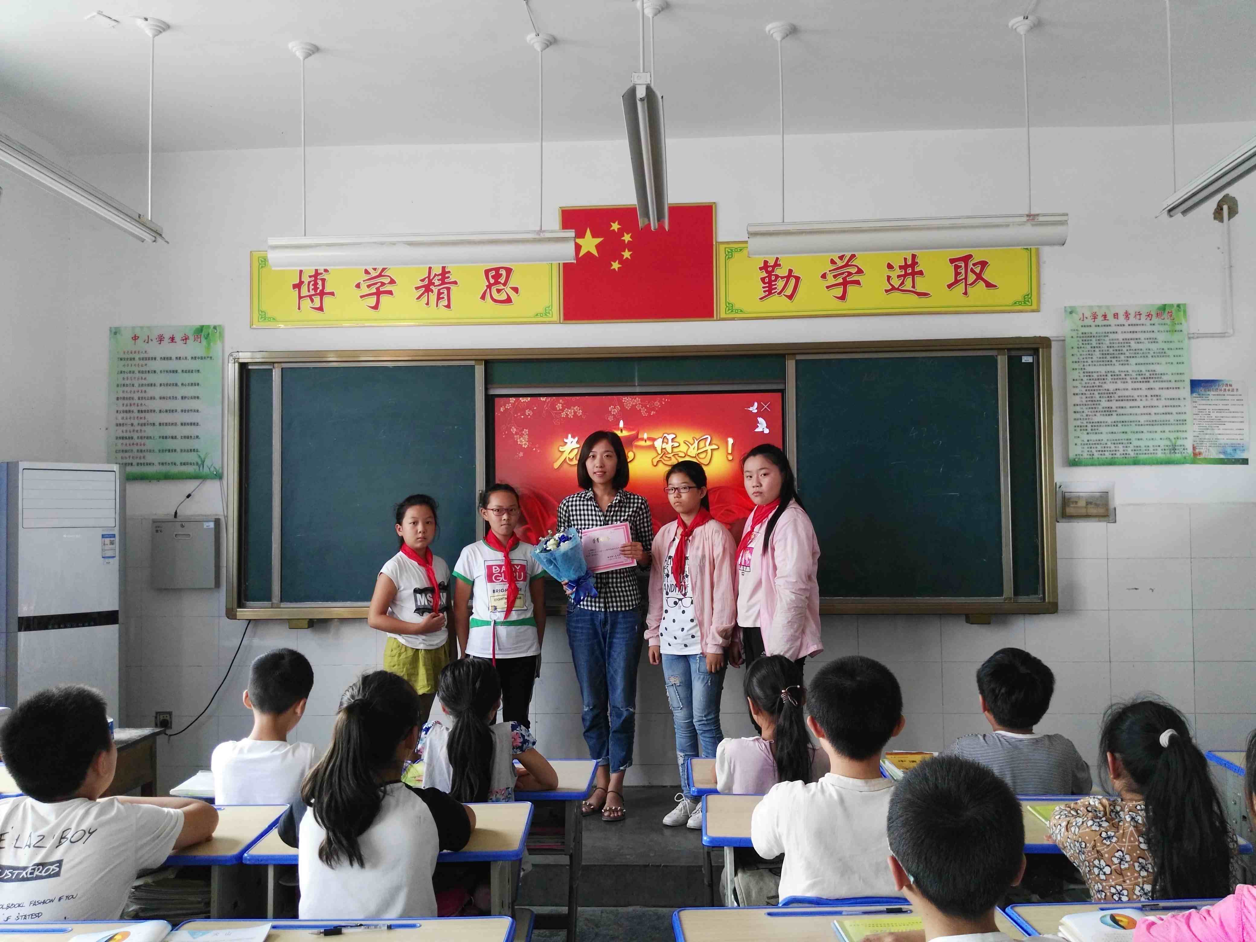 金秋九月,果香氤氲,在教师节到来之际, 王集小学孩子们通过手抄报、亲手给老师制作一张贺卡、给老师献花等丰富多彩形式来表达对老师祝福和问候。孩子们都为老师送上贺卡,并在贺卡上写上感恩、祝福的话语来表达对老师的祝福。虽然礼物轻,但孩子们发自内心的祝福还是让老师们感动的热泪盈眶。 此次活动的开展,既使尊师爱生的情感得以升华,又让学生用实际行动感恩教师,让老师感受到学生的敬爱之情。同时,也让教师思考自己的责任,更用爱心去呵护学生。