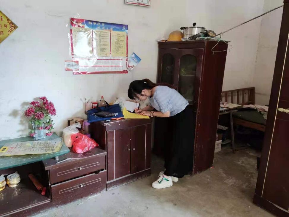 撸起袖子,她说“一定要精准”。扶贫档案资料是扶贫工作的前提和基础。到北朱村扶贫后,她一头扎到资料堆里,待摸清底数、查出问题、滤出工作头绪后,她就开始忙碌起来。为了更深入的了解情况,她一有时间就往村里跑,与老人家人交流、向周围邻居了解,多途径获得了老人的所有情况。在对情况了然于心的前提下,她与村干部一起制定了详细的帮扶计划,协助落实扶贫政策。乡镇的本职工作本就十分忙碌,但她一有时间就坐车往北朱村跑,了解朱带记老人真实生活情况,通过与老人交流掌握第一手资料,及时将相关资料建档立卡,实时调整,切实做到对扶贫对象的动态管理。有时候为了一个数据,她会反复的核查核实多次,拿她自己的话说:数字弄准了,自己心里踏实,要不然心里空落落的没着落。2018年以来,她累计走访贫困户200余次,整理各类扶贫资料100余份,保证了扶贫资料规范有序和真实有效。看着档案柜里一本本扶贫资料,可有谁知道她用了多少水笔,熬了多少个夜晚,付出了多少心血?