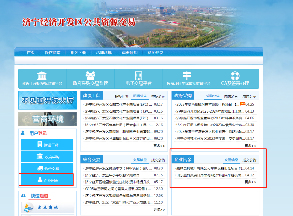济宁经济技术开发区为发挥区公共资源交易平台作用,推动各类公共资源交易进平台,搭建了“闲余交易”平台,是全市首个为民营企业闲置资产交易免费提供服务的政府平台。平台系统包含了创建项目、设置标的和竞价、发布公告、更正公告、参与网络竞价、查看报名统计等相关功能,满足了全流程电子化交易的需求,实现了市场主体参与交易“零跑腿”“零接触”“零成本”。