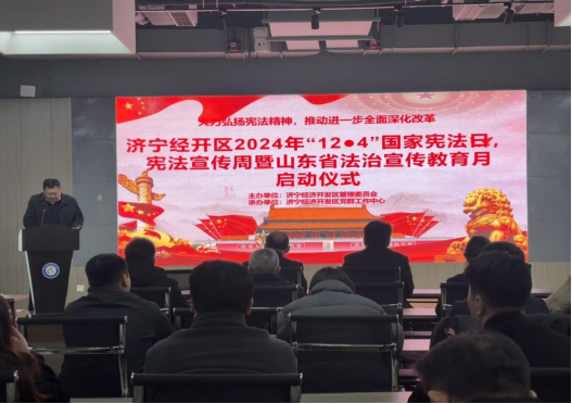 12月4日是第十一个国家宪法日,为大力弘扬宪法精神,推动进一步全面深化改革,增强全民法治观念,推动全区公民树立宪法意识,营造学习宪法、尊重宪法、维护宪法权威的氛围。12月4日上午,济宁经开区2024年“12·4”国家宪法日、宪法宣传周暨山东省法治宣传教育月活动启动仪式在经开区圣祥小镇举行。