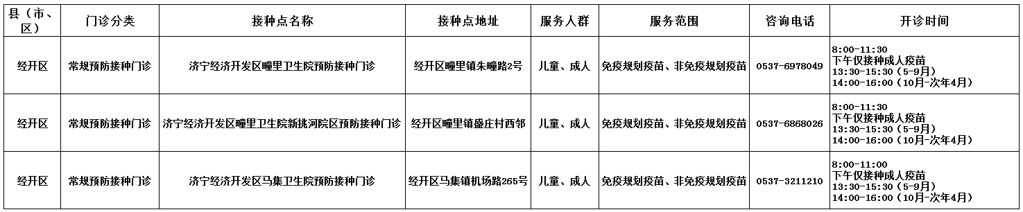 2026年济宁经开区预防接种门诊依旧沿用全年无休工作制度,继续为广大群众提供优质、便捷的接种服务。开诊时间公示如下: