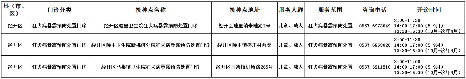 狂犬病暴露预防处置门诊信息公示